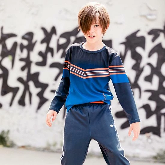 With long sleeves and a chevron stripe print, our Athletic Long Sleeve Top offers both style and performance function. This poly/elastane top features a soft and stretchy fit with contrast long sleeves, a crew neckline, and a logo print on the front.