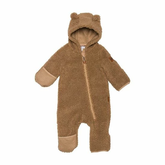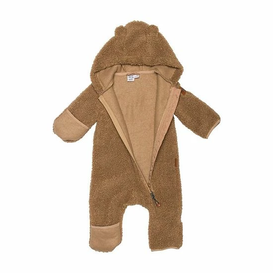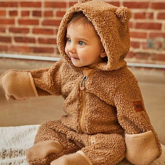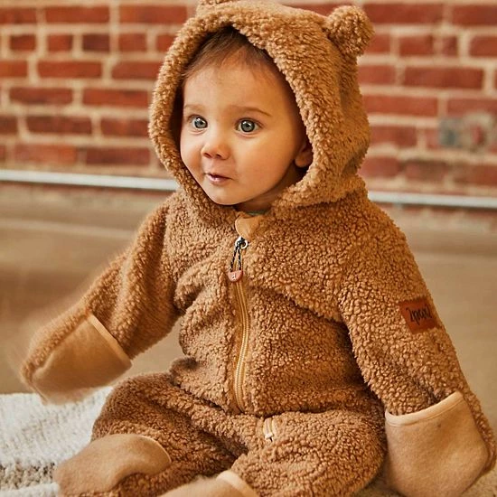 Our Plush One Piece Brown is the best way to keep baby warm on a chilly day. This adorable one-piece suit is made from ultra-soft poly faux fur fabric and features long sleeves with hand mitts, an attached hood with animal ears, an asymmetrical zipper closure, and roll-back cuffs to warm the toes.