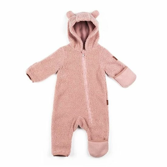 Our Plush One Piece Pink is the best way to keep baby warm on a chilly day. This adorable one-piece suit is made from ultra-soft poly faux fur fabric and features long sleeves with hand mitts, an attached hood with animal ears, an asymmetrical zipper closure, and roll-back cuffs to warm the toes.
