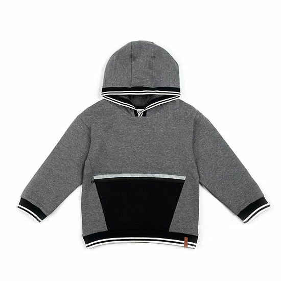 He’s sure to love the cool look and comfortable feel of our Hooded Fleece Top With Zipper Pocket Dark Heather Grey, Black and White. Detailed with a contrast front pocket, this hoodie is made from cotton/poly fleece and features a pullover silhouette with long sleeves, dropped shoulders, and contrast trim.