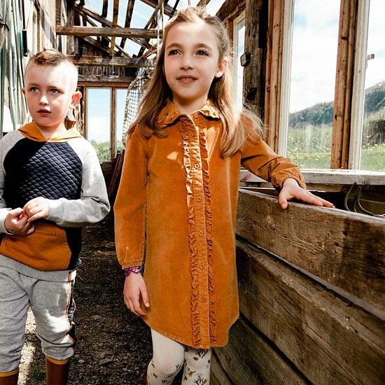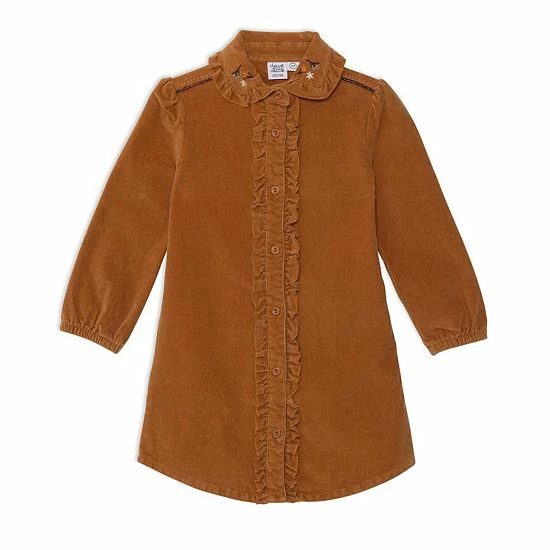 A ruffled placket lends a touch of texture to our Long Sleeve Corduroy Shirt Dress With Frill. This button front shirt dress is made from pinwale cotton corduroy and features elastic cuffs, a rounded collar with floral embroidery, and contrast piping across the shoulders.