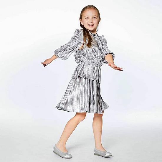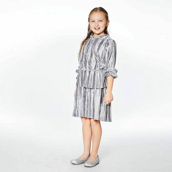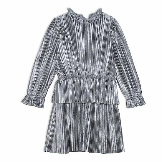 Our Long Sleeve Crinkle Dress Silver Grey is a perfect choice for any party or special occasion. This design features long sleeves with elastic cuffs, a round neckline, and an elastic waist adorned with a fabric overlay.