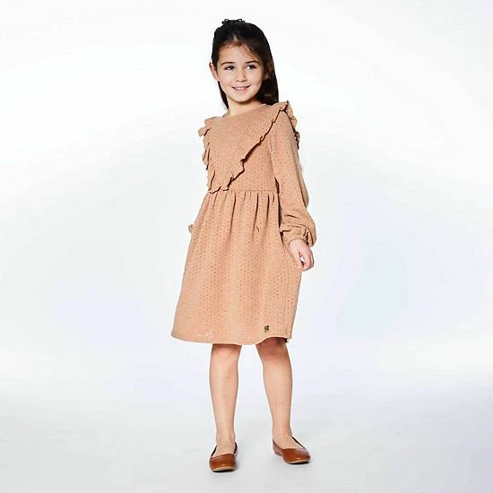 A subtle pointelle texture adds an additional layer of style to our Long Sleeve Dress With Frill Beige. This poly/cotton/elastane dress features long sleeves with elastic cuffs, a round neckline, a shirred waistband, and a ruffled front yoke. It’s finished with a keyhole and button closure at the back of the neck.