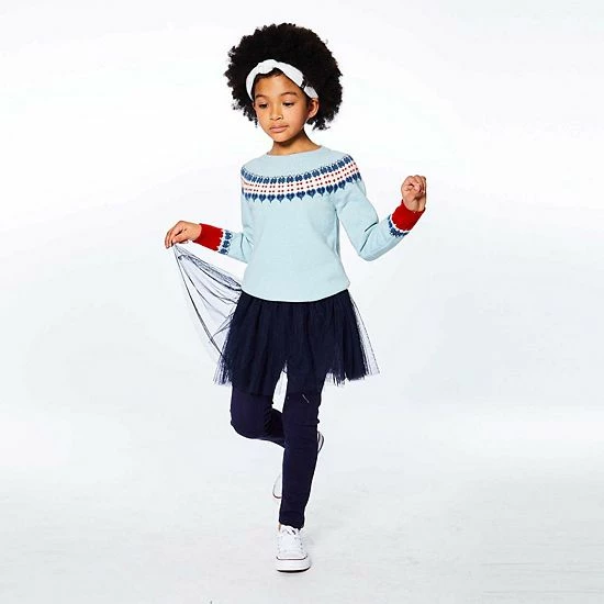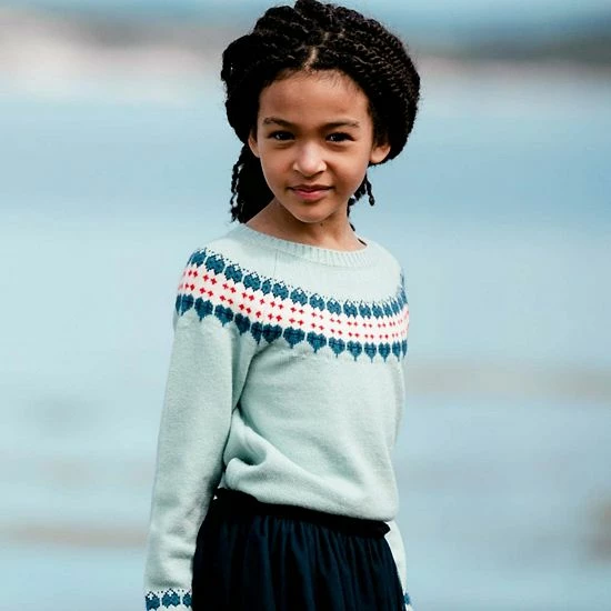 A fairisle pattern adds ski-inspired style to our Long Sleeve Knitted Sweater Light Blue and Red. This pullover sweater is made from an acrylic/nylon/poly blend and features long raglan sleeves, a round neckline, and a Nordic pattern across the chest and sleeves. A rib knit hem and contrast cuffs complete the look!