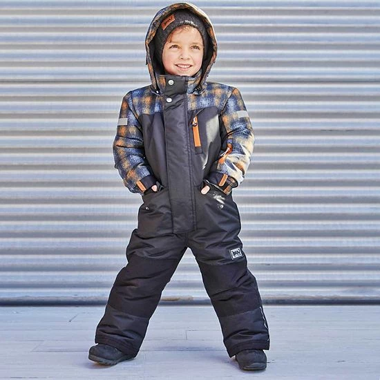 A checkered pattern adds bold style to our One Piece Snowsuit Checked Print. Detailed with a detachable hood, this insulated snowsuit features a TEFLON coating for water-resistance, articulated knees for ease of movement, an inside adjustable waist, and a fleece lining for added warmth. It’s detailed with an adjustable pant hem, reinforced knee and seat panels, and a zippered sleeve pocket to hold a ski pass.