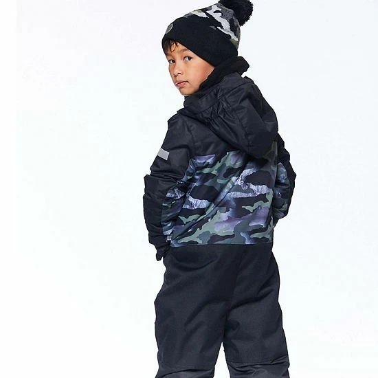 Little ones can enjoy the snow in style in our One Piece Snowsuit Printed Camo. Weather-resistant and insulated for warmth in sub-freezing temperatures, this snowsuit features an adjustable inside waist, reinforced knees panels, rubberized elastic ankles, and a fleece lining for added warmth.