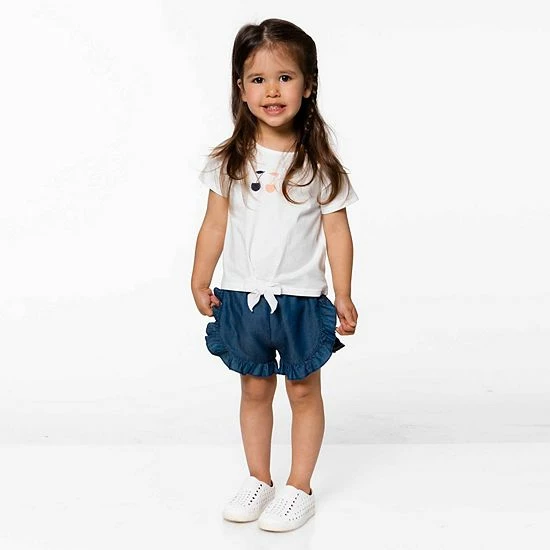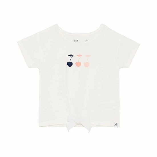 A triple cherry print adds sweet springtime style to our Organic Cotton Slub T-Shirt With Bow Off White. This soft cotton tee features short sleeves, a round neckline, a graphic print on the chest, and a solid bow at the hem. It’s perfect for pairing with any bottom in our The Merry Cherry collection.
