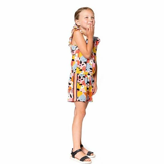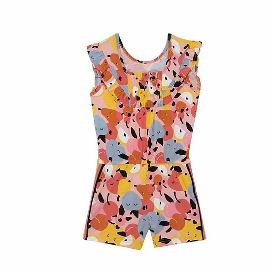 Animated fruits and little ruffles make our Printed Jumpsuit Pink Fruit perfect for a warm day. This one-piece is made from a soft viscose/elastane blend and features an allover fruit print in a sleeveless silhouette with a round neckline, a smocked back, and an elastic waistband. Ruffles trim the shoulders and adorn the back.