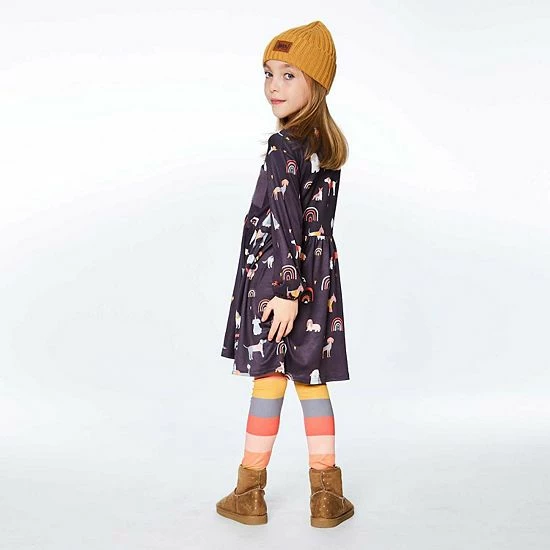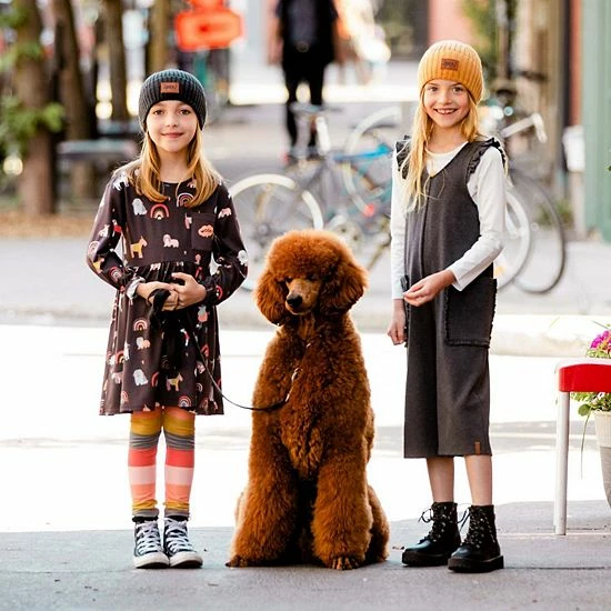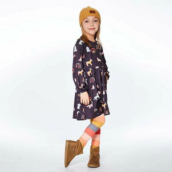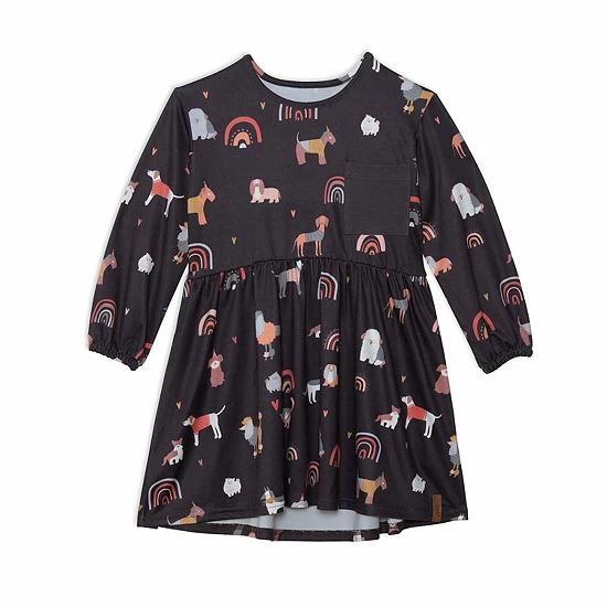 She can play and twirl and run all day in our Printed Poodles Long Sleeve Dress. Super comfy for little ones to wear, this design boasts a round neckline, a shirred waistband, and a woof print patch pocket on the left chest.