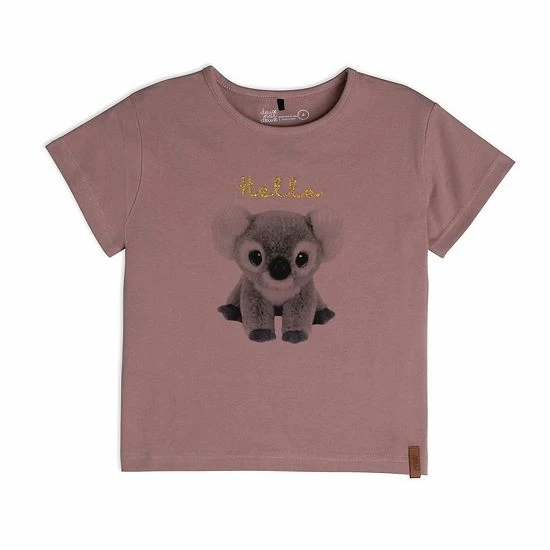 A cuddly koala graphic makes the Short Sleeve T-Shirt Dusty Mauve Print an adorable addition to any little girl’s wardrobe. This tee is made from soft stretch cotton fabric and features short sleeves, a crew neckline, a koala graphic, and a glitter hello print.