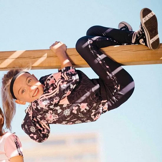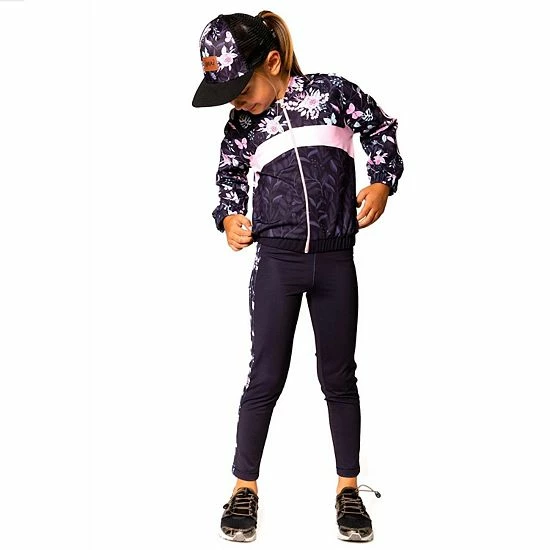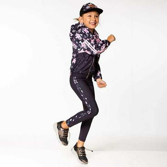 Our Athletic Legging Black is perfect for the active little girl who loves to run, jump, dance, and play sports. This sporty legging features a extensibley fit, an elastic waistband, and a solid design with floral print stripes down each leg. Pair it with a matching jacket for the perfect head to toe look!