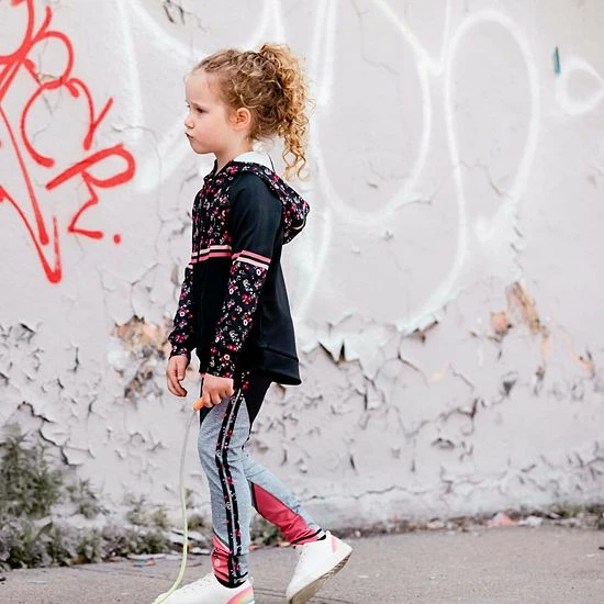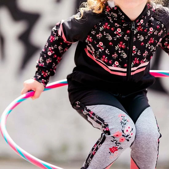 A perfect blend of sporty and sweet, our Athletic Legging Light Heather Grey With Printed Flowers is perfect for any active day. This stretch poly/elastane legging features a colorblocked pattern with contrast floral side inserts, a floral print on the thigh, and a stretch elastic waistband that makes it oh-so-comfortable to wear.