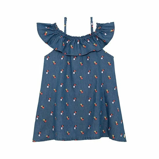 Perfect for parties and play dates, our Chambray Printed Dress With Frill is sure to become an instant favorite. This dress is made from 100% lyocell and boasts a comfortable fit and a lightweight feel with an allover flower print. It’s detailed with adjustable spaghetti straps and a ruffled flounce around the neckline.