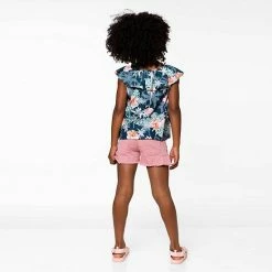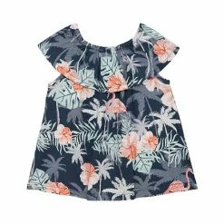 In a soft viscose/cotton blend, our Flamingo Printed Blouse is perfect for the little girl with a big sense of style. This colorful blouse features an allover print with flamingos, palm trees, flowers, and leaves. It boasts an A-line silhouette with ruffled flutter sleeves, a gathered scoop neckline, and a small logo label at the hem.