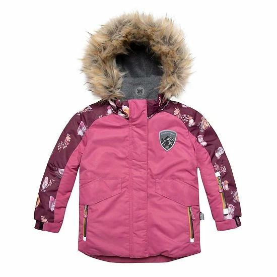 Little ones that love animals are sure to adore the playful look and the cozy feel of our Forest Animals Two Piece Snowsuit With Printed Pant. Insulated and lined with soft fleece, the jacket features a hood with faux fur trim, elastic cuffs, a wind stopper placket, and a snowskirt. The coordinating pants boast an adjustable waist, adjustable and removable logo straps, and reinforced panels on the knees, seat, and hem.