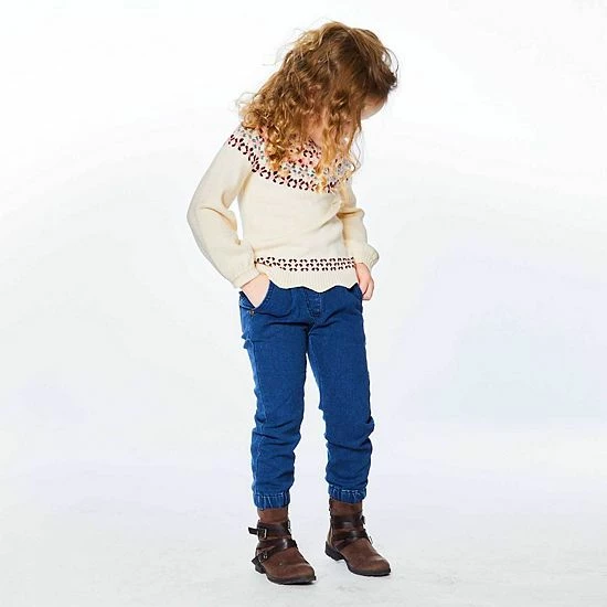 An elastic waistband and elastic ankles make our French Terry Denim Jogger a versatile addition to any little girl’s wardrobe. These knit jeans are made from a cotton/poly/elastane blend and feature a comfy fit with slant front pockets, belt loops, and logo hardware.