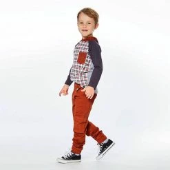 Deux Par Deux Hooded Jersey Top Plaid Print