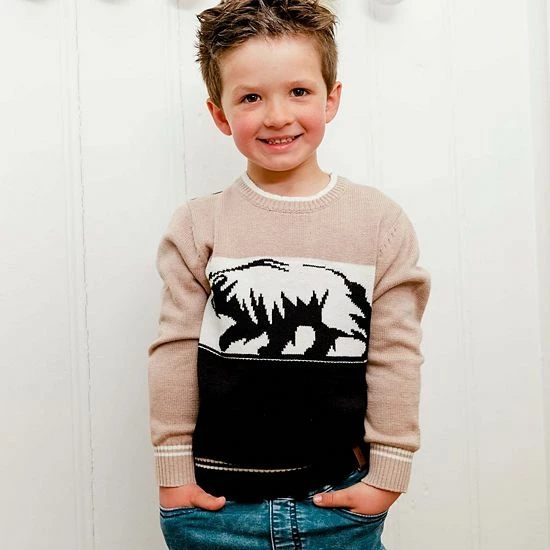 With a big bear across the chest, this pullover sweater is perfect for any chilly day. Our Jacquard Knit Top With Bear is made from a cotton/polyamide/wool blend and features long sleeves, a crew neckline, contrast tipping, and rib knit trim at the neck, cuffs, and hem.