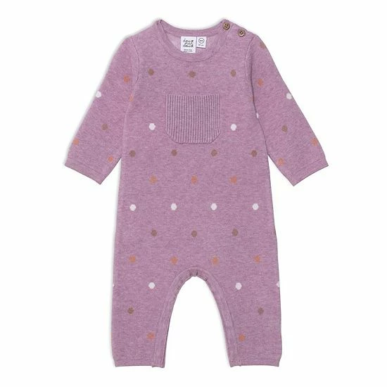 She’s sure to adore the playful dot print and pretty purple hue of our Knit Jumpsuit With Polka Dots. This one-piece jumpsuit features long sleeves, a crew neckline, a ribbed patch pocket on the chest, and snaps on the shoulder. It’s a perfect blend of style and comfort!