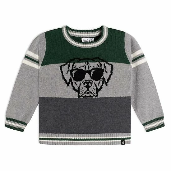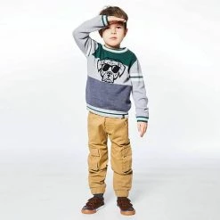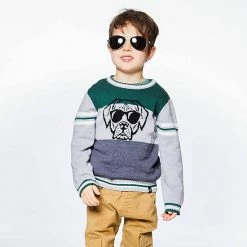 Our Knit Sweater With Dog Print boasts comfort and casual style with a unique twist. This sweater is made from a cotton/polyamide/wool blend and features a pullover silhouette with long sleeves, a crew neckline, stripes, and an intarsia dog wearing sunglasses on the chest.
