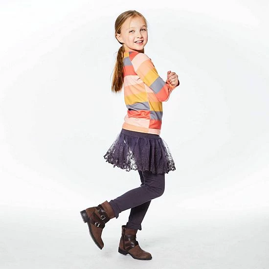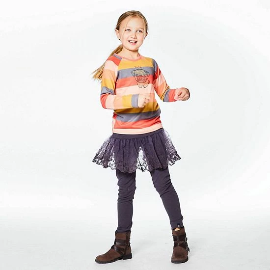In stretch fleece with a lace overlay, our Lace Skirt Legging Dark Grey offers the perfect blend of casual comfort and girly style. This legging features an easy pull-on fit with an elastic waistband, a mesh skirt with scalloped lace trim, and a logo label at the hem.