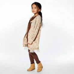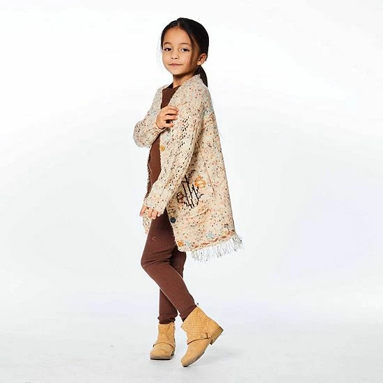 Cozy up on a cold day in our Long Knitted Cardigan With Fringe. This adorable cotton/poly sweater features a flecked and marled pattern with a round neckline, multicolor buttons down the front, two front pockets, and a fringed tassel hem.