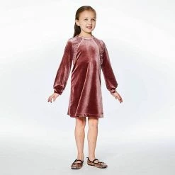 Polka dot ruffle trim adds a little something extra to this versatile velvet-finish shift dress. Our Long Sleeve Dress With Frill Dusty Ocher features long sleeves, a round neckline, and a metal logo plate at the hem. The stretch fabric makes it equal parts comfortable and chic.