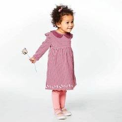 Deux Par Deux Long Sleeve Dress With Frill Striped