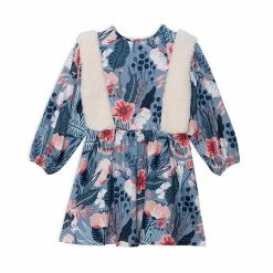 Sherpa inserts add soft, cozy charm to this casual dress with an allover floral print. Our Long Sleeve Dress With Sherpa features elastic cuffs, a round neckline, a flared circle silhouette, and an elastic waistband with a pompom bow.