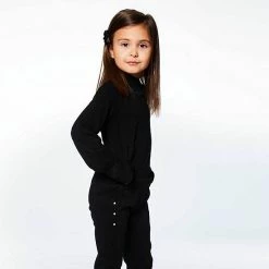 On its own or layered beneath a jumper, our Long Sleeve Mock Neck Top Off Black adds versatility to any little girl’s wardrobe. In a rayon/elastane blend, this top features long sleeves with flared cuffs, a mock neckline, and ruffled trim around the neck.