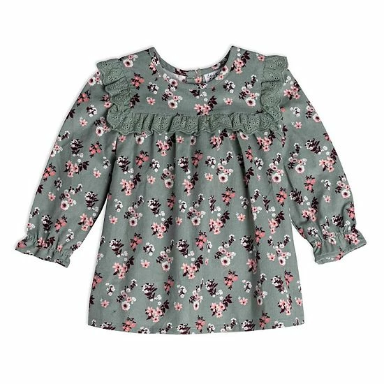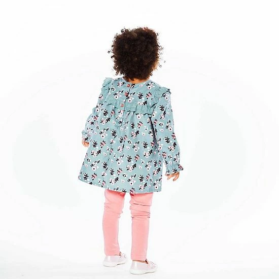 In pinwale corduroy, our Long Sleeve Printed Tunic With Legging offers comfort and style on a cool day. The tunic top features long sleeves with elastic cuffs, an allover floral print, a round neckline, and ruffled eyelet trim. A solid organic cotton legging with an elastic waist makes it oh-so-comfortable to wear.