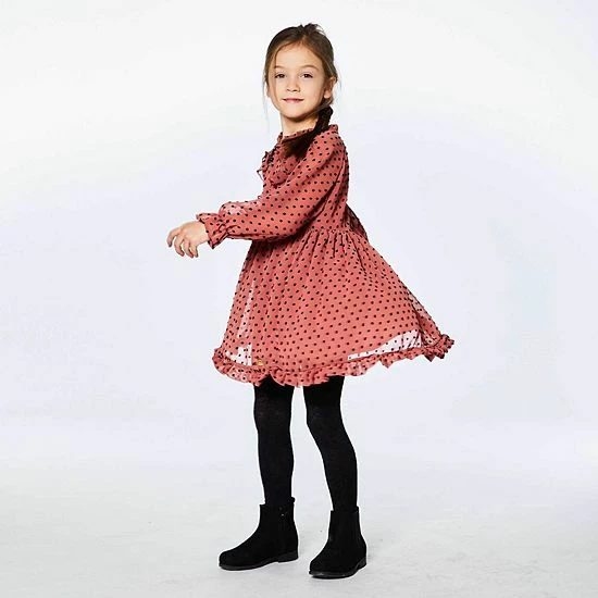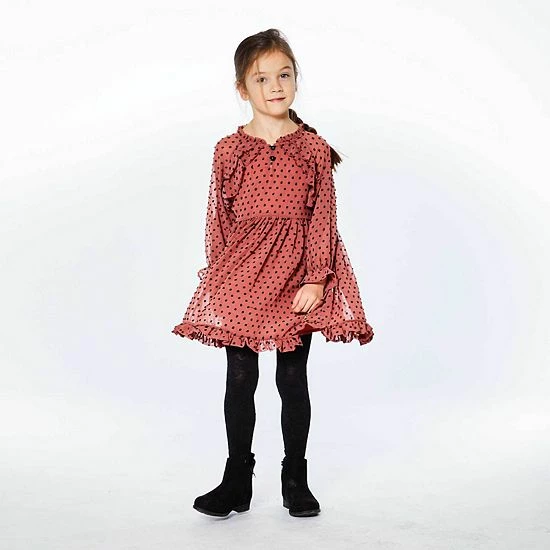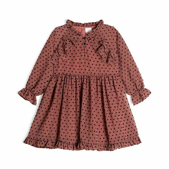 Delicate ruffles add texture and charm to our Long Sleeve Raglan Dress With Frill Polka Dots. This darling dress features long raglan sleeves with ruffles and elastic cuffs, a ruffled round neckline with two buttons, and a shirred waist. It’s detailed with an allover polka dot print and a frill around the hem.