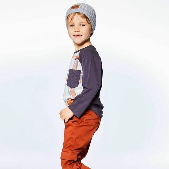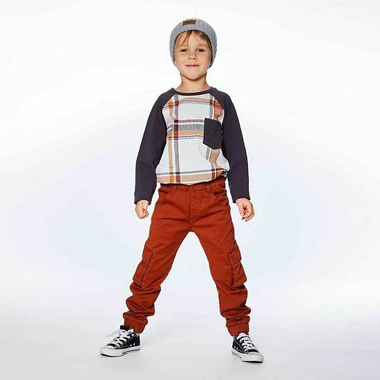 Add instant style to any boy’s wardrobe with our Long Sleeve Raglan Jersey Top With Pocket Plaid. Made from soft cotton/elastane, this jersey tee features contrast raglan sleeves, an allover plaid print, and a solid patch pocket on the chest.