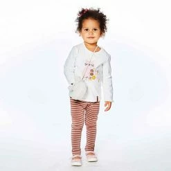 A cat and flower print makes the Long Sleeve Tee Shirt Off White a darling addition to any little girl’s wardrobe. This stretch cotton tee shirt features long sleeves, a graphic print on the chest, a round neckline, and tiny ruffle accents at each wrist.