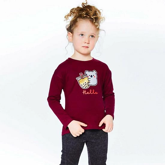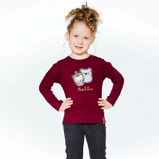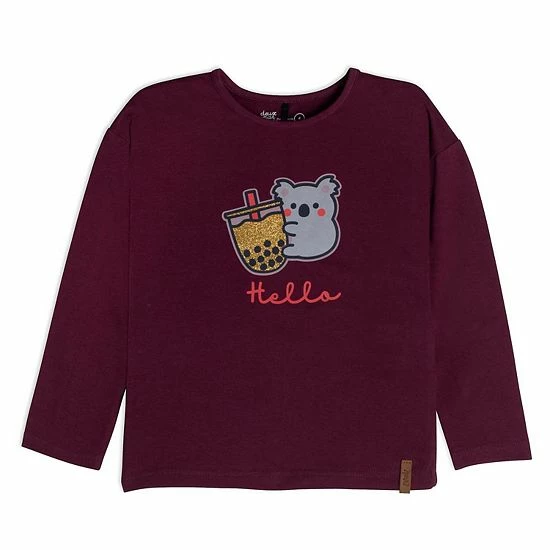 With a koala bear sipping tea, our Long Sleeve Top With Koala Print is sure to bring a smile to any little girl’s face! This adorable tee shirt is made from soft stretch cotton and features long sleeves, a crew neckline, a glitter print, and a small logo label at the hem.