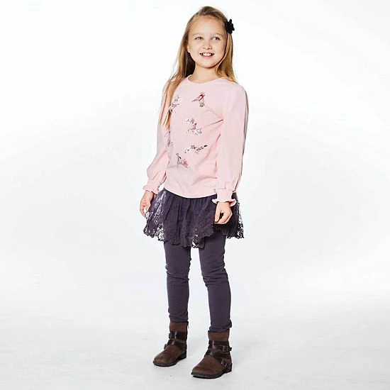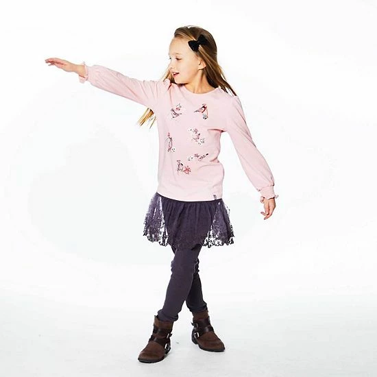 Tassel threads add a unique texture to our Long Sleeve Top With Ruching Silver Pink. Made from a soft organic cotton/elastane blend, this tee features long sleeves, a round neckline, smocked elastic cuffs, and a bird motif on the chest.