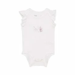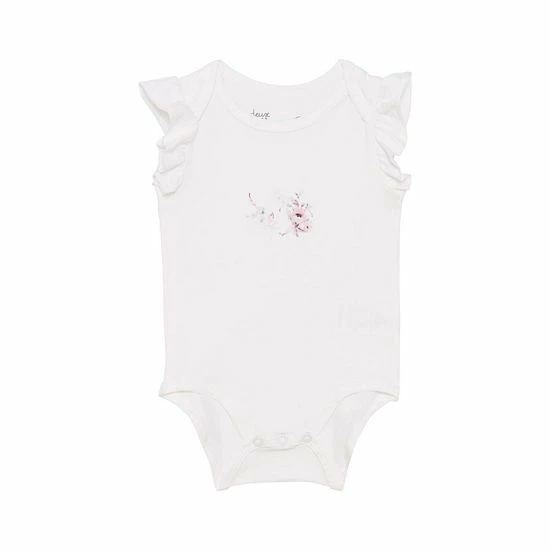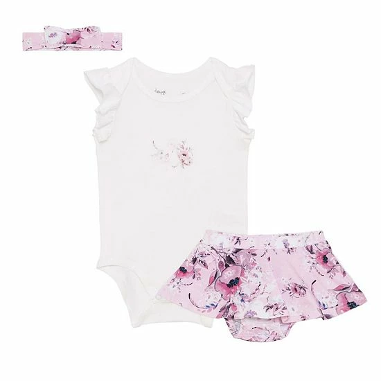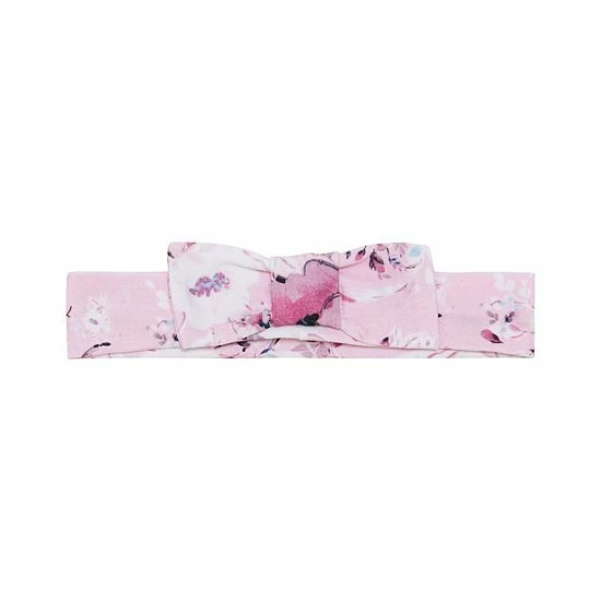 A delicate flower print adds ultra-sweet style to the Organic Cotton Bodysuit and Bloomer Set Floral Pink. This darling set features a solid short sleeve bodysuit with ruffle sleeves, a floral graphic print on the chest, and a skirted bloomer with an elastic waistband. A matching floral print headband with a bow adds the perfect finishing touch.