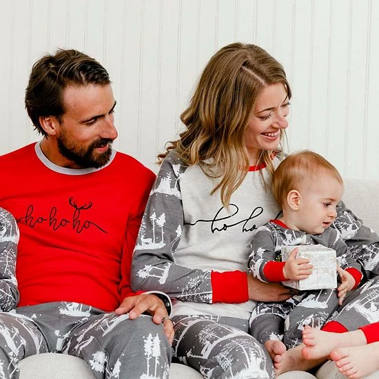 Dress baby to match their older siblings and parents with our Organic Cotton Christmas Family One Piece Pajama Deer Print. This footie pajama features an allover deer and tree print in a long sleeve silhouette with an asymmetrical zipper and solid red trim.