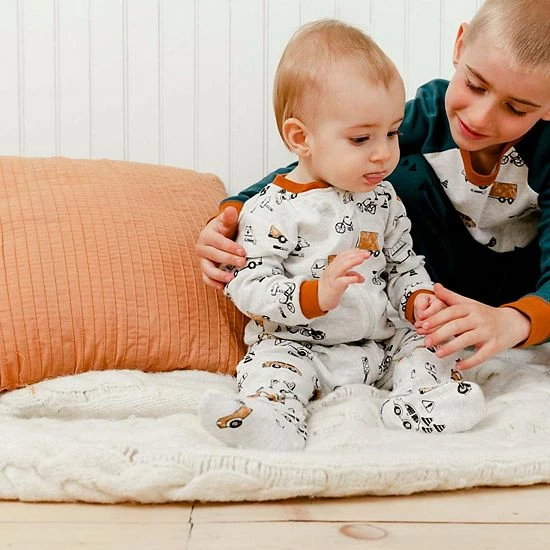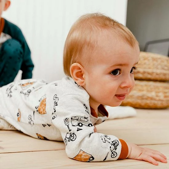 Little ones can lounge, play, and sleep in style in our Organic Cotton One Piece Printed Pajamas With Printed Automobiles. This ultra-soft one-piece footie pajama features long sleeves, a round neckline, an asymmetrical zipper closure, and an allover print of cars, buses, and bikes.