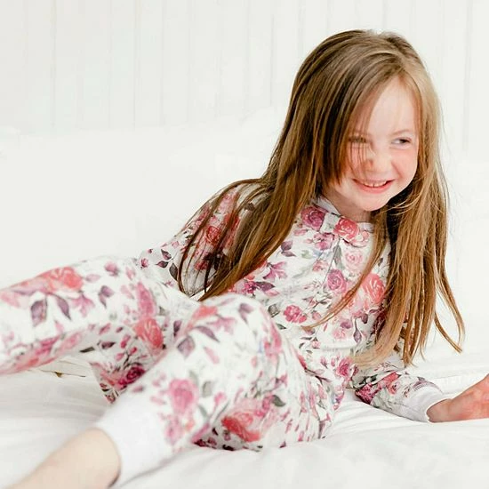 Deux Par Deux Organic Cotton One Piece Printed Roses Pajama Set