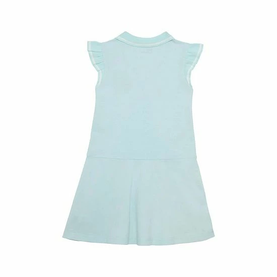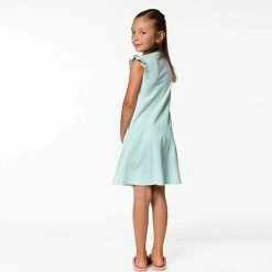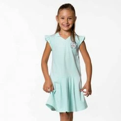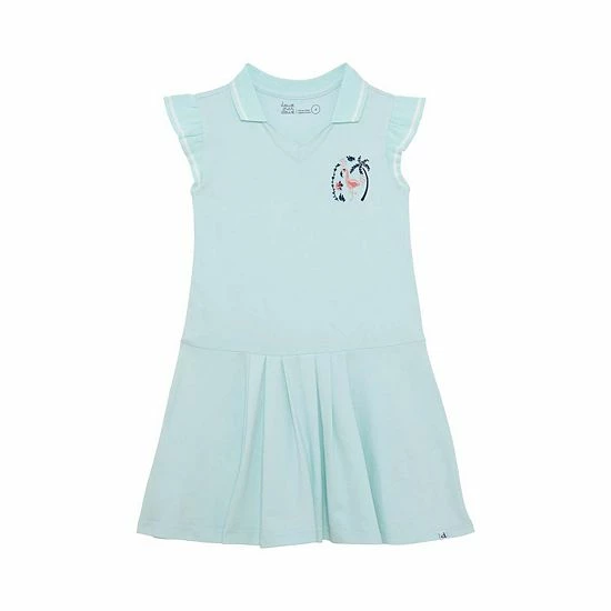 A polo collar gives this flared A-line dress a sporty edge with a tennis-inspired vibe. Our Organic Cotton Polo Dress Light Mint features a flutter sleeve silhouette with a V-neckline, a polo collar with contrast tipping, and a pleated drop waist skirt.
