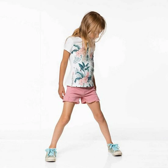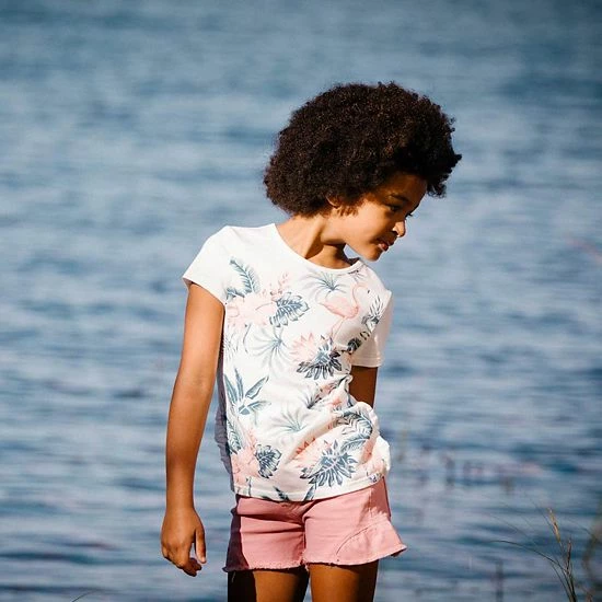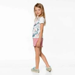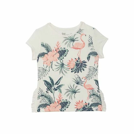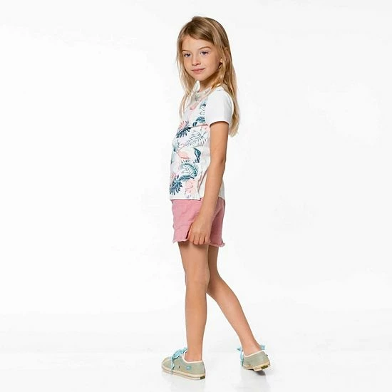 With an adorable look and a comfortable fit, our Organic Cotton T-Shirt Off White Flamingo is the perfect addition to any little girl’s wardrobe. In extensibley organic cotton fabric, this tee features short sleeves, a round neckline, and ruffles on each side. An allover flamingo, leaf, and floral print adds one-of-a-kind style.