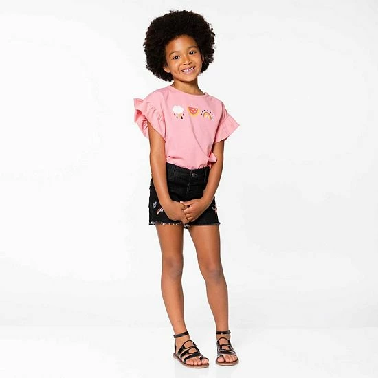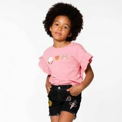 Rainbows and clouds make our Organic Cotton T-Shirt Pink an adorable addition to any little girl’s wardrobe. This tee features a relaxed fit with short sleeves trimmed with ruffles, a round neckline, and a fun print with a watermelon, cloud, and colorful rainbow.