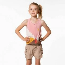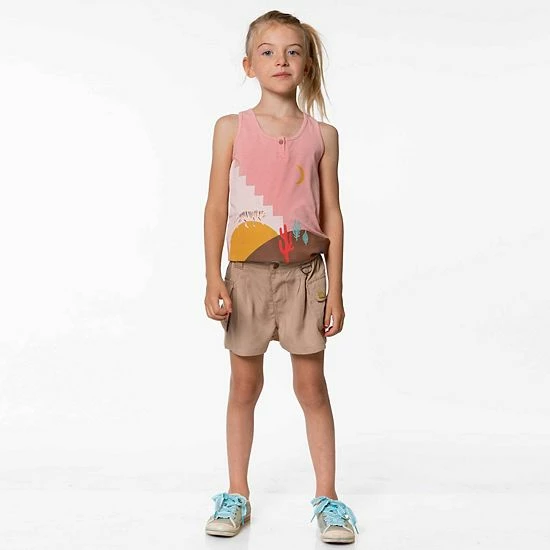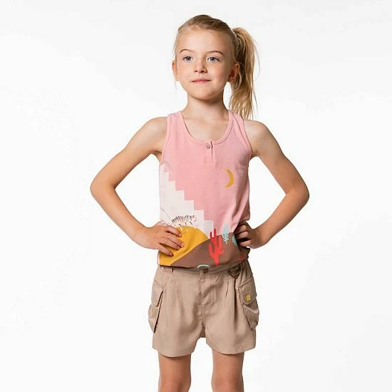 Jungle graphics make this sleeveless tank perfect for the sweet little girl with a wild side. The Organic Cotton Tank Top With Front Placket Rose Tan features a relaxed fit with a scoop neckline with a single button, a racerback, and a small logo label at the hem.