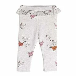 Ruffled shoulders and a playful hen print make this set perfect for any little chick! The Organic Cotton Top and Pant Set Hen Print Rust and Beige features a long sleeve top with a round neckline, back snaps, and a graphic print. It’s teamed with an allover hen print legging with an elastic waist and a row of ruffles beneath the waistband.