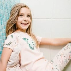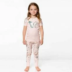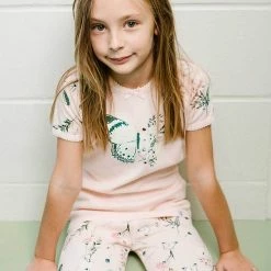 Flowers and butterflies make this PJ set perfect for the little girl with a sweet sense of style. The Organic Cotton Two Piece Pajama Set Light Pink Print features a short sleeve raglan tee with printed sleeves, a butterfly graphic on the chest, and a crew neckline with a bow. Allover print pants with an elastic waistband make it super comfortable for lounging and sleeping.