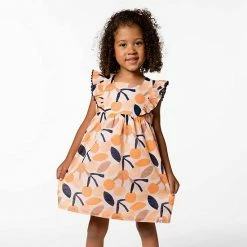 A girly A-line silhouette makes our Printed Dress With Frill Peach Cherry perfect for any spring occasion. This woven dress is made from 100% cotton and features a sleeveless bodice with ruffled accents, a square neckline, scalloped edging, and three little buttons at the back of the neck.