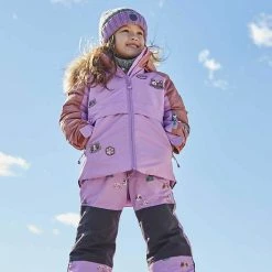 Make sledding, skiing, and snowboarding days oh-so-stylish with our Printed Little Cats Two Piece Snowsuit Brown and Purple. Simply adorable with a colorful cat print, this snowsuit is water-resistant, weather-resistant, and insulated for warmth in sub-freezing temperatures. The jacket is lined with fleece and detailed with removable faux fur trim around the hood. The pant boasts articulated knees with reinforced knee panels and adjustable logo straps.