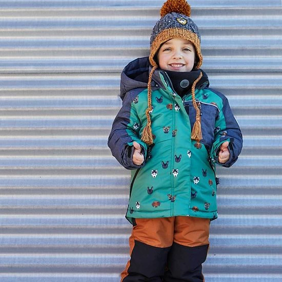 Perfect for the little boy who loves puppies, our Printed Little Dogs Two Piece Snowsuit Green and Brown is one he’s sure to love to wear in the snow. Insulated and coated for water-resistance, this set features an allover print jacket with a fleece lining, a detachable hood, contrast sleeve inserts, and elastic cuffs. It’s teamed with a solid pant with adjustable logo straps, reinforced knee and seat panels, and an adjustable waist. A polar fleece neckwarmer is included.
