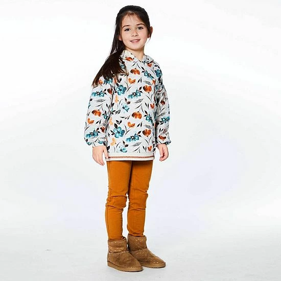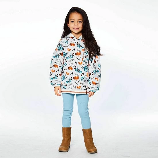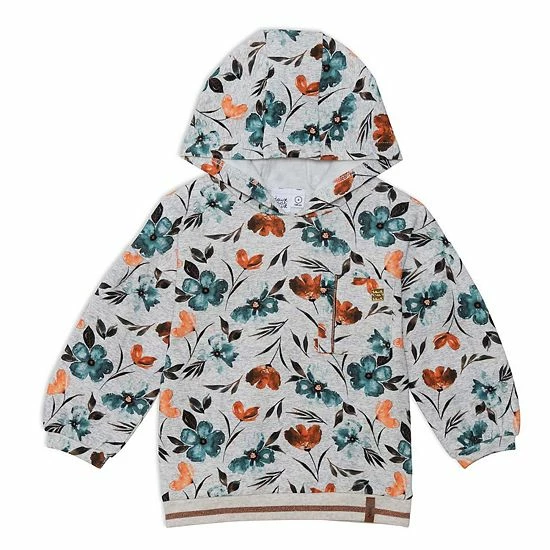 A bold floral print makes this hooded top perfect for the little girl with a sporty sense of style. Our Printed Long Sleeve Top With Pocket features a comfortable fit with dropped shoulders, a striped rib knit hem, and a left chest patch pocket with contrast piping.